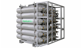 水素用大型高圧蓄圧機(98MPa/1㎥)投入