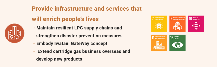 Iwatani will continue to contribute to achieving the SDGs and a sustainable society through our business activities.